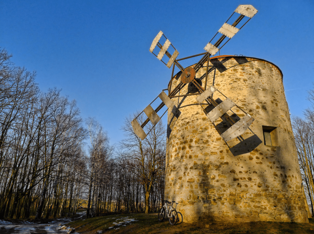 Hlavná cesta a krátke stúpanie, ktoré je dnes prvé a aj ho trochu cítim, ma zavedie na kopec Hrebeň (230 m). Práve v týchto miestach je dobrý výhľad na okolie, ktoré sa z rovinatej nivy Moravy mení na zvlnený terén Chvojnickej pahorkatiny. V diaľke dobre rozoznateľný Havran je celý biely. Napájam sa na žltú značku, ktorá ma krátkym lesným úsekom s trochou snehu a ľadu privedie pod, z môjho pohľadu nevyužitú, holíčsku dominantu. Veterný mlyn. Krásna stavba, ktorá v okolí nemá obdoby, je obkolesená stromami a nemôže tak vyniknúť jej majestátnosť. Vždy si spomeniem na podobný prípad pri kaplnke sv. Márie Magdalény nad Borským Mikulášom. Od mlyna je len kúsok k ďalšej miestnej zaujímavosti, pravoslávnemu chrámu Matky Božej Počajevskej. Elegantná stavba, ktorá je v kontraste so zanedbaným starým židovským cintorínom v jej blízkosti. Prechádzané úseky umožňujú výhľad smerom na okresné mesto Skalica, ktorá sa stane mojim dnešným cieľom.