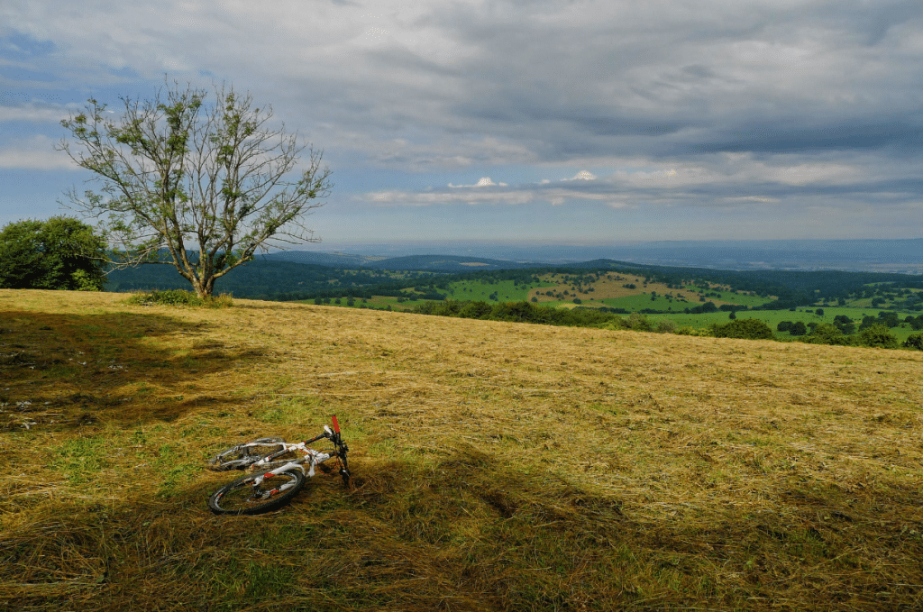 Minulý rok na jar som sa aj s bicyklom snažil ísť priamo po červenej, ohrada-neohrada. Dnes radšej idem po pohodlnej vyjazdenej lúčnej ceste. S neopozeranými výhľadmi do šíreho okolia prechádzam ďalšími kopanicami, radosť tu bicyklovať. Zisťujem, že kríza pominula, takže si trúfam dnes ešte niečo navštíviť. Napájam sa na asfaltovú cestu. Výhľady na kopce Uchánok a Peckovú ma nikdy nenechajú chladným. Pri dnešnej teplote blížiacej sa 30 °C sa tomu ani nedivím. Rýchly zjazd do Sobotišta a zároveň premýšľanie kadiaľ ďalej. Minule som vynechal prieskum južnej časti kopca Zámčisko, dnes si naň posvietim.