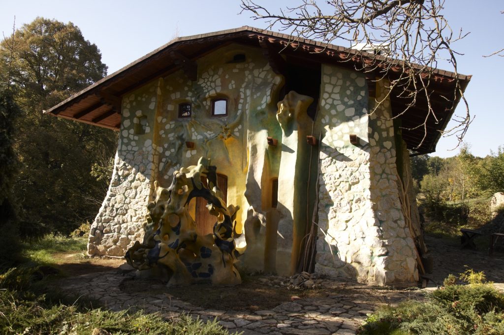 Stavba je plná zaujímavostí a tajomstiev. Hneď za vstupnou bránou sa nachádza veľký gaštan, v ktorom sídli troll. Na domčeku nájdete veľa okien, avšak hneď zistíte, že každé okno je iné. Ak by ste v tomto dome hľadali pravý uhol tak márne, žiaden sa tam totiž nenachádza. Mozaikovitá podlaha je vytvarovaná do netradičných obrazcov. Schody vedúce do podkrovia pripomínajú schody do neba. Na prvý pohľad sa zdajú byť rovnaké, no každý schod je iný. Celý domček je vyrobený z kameňa a je pokrytý akoby haďou kožou. Tento unikátny domček má aj svojho strážcu v podobe vysokého farebného monumentu stojaceho pred vchodom do domu.