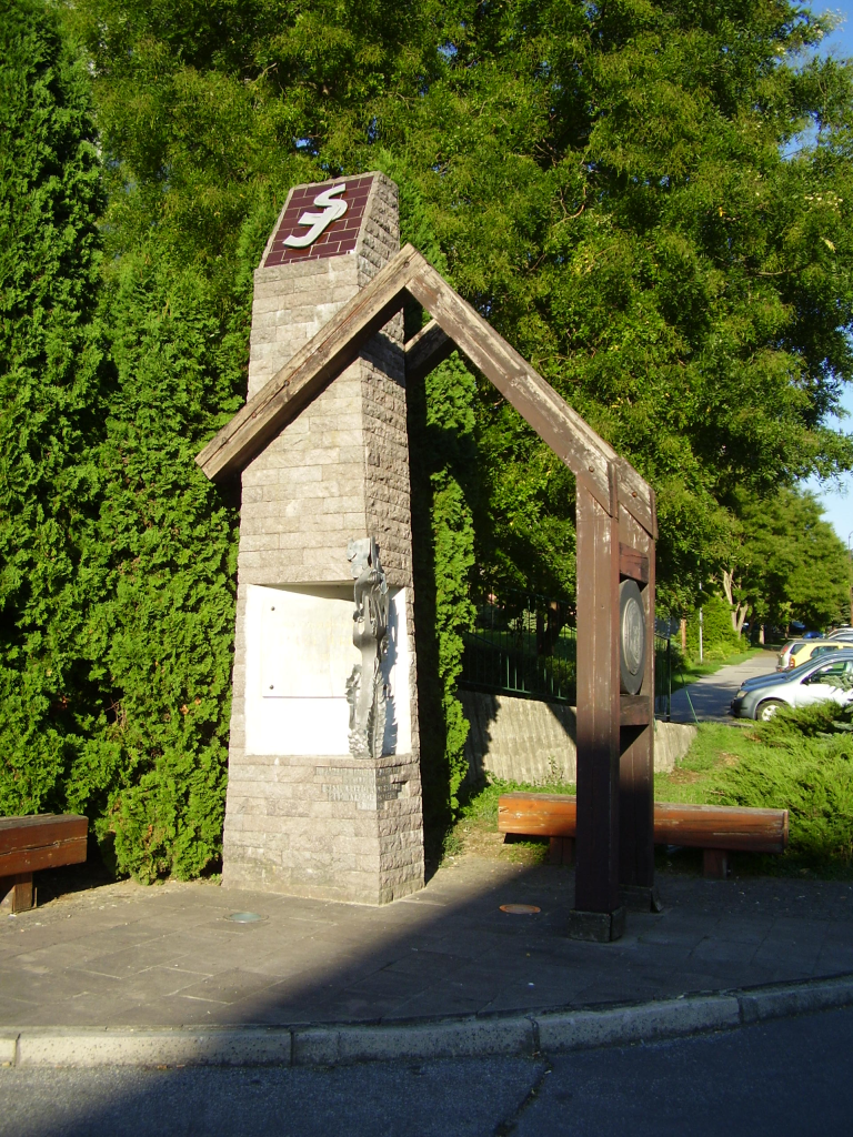 Brezová pod Bradlom, ul. Horný rad. Pamätník Samuela Jurkoviča umiestnený v blízkosti miesta, v ktorom stál jeho rodný dom.