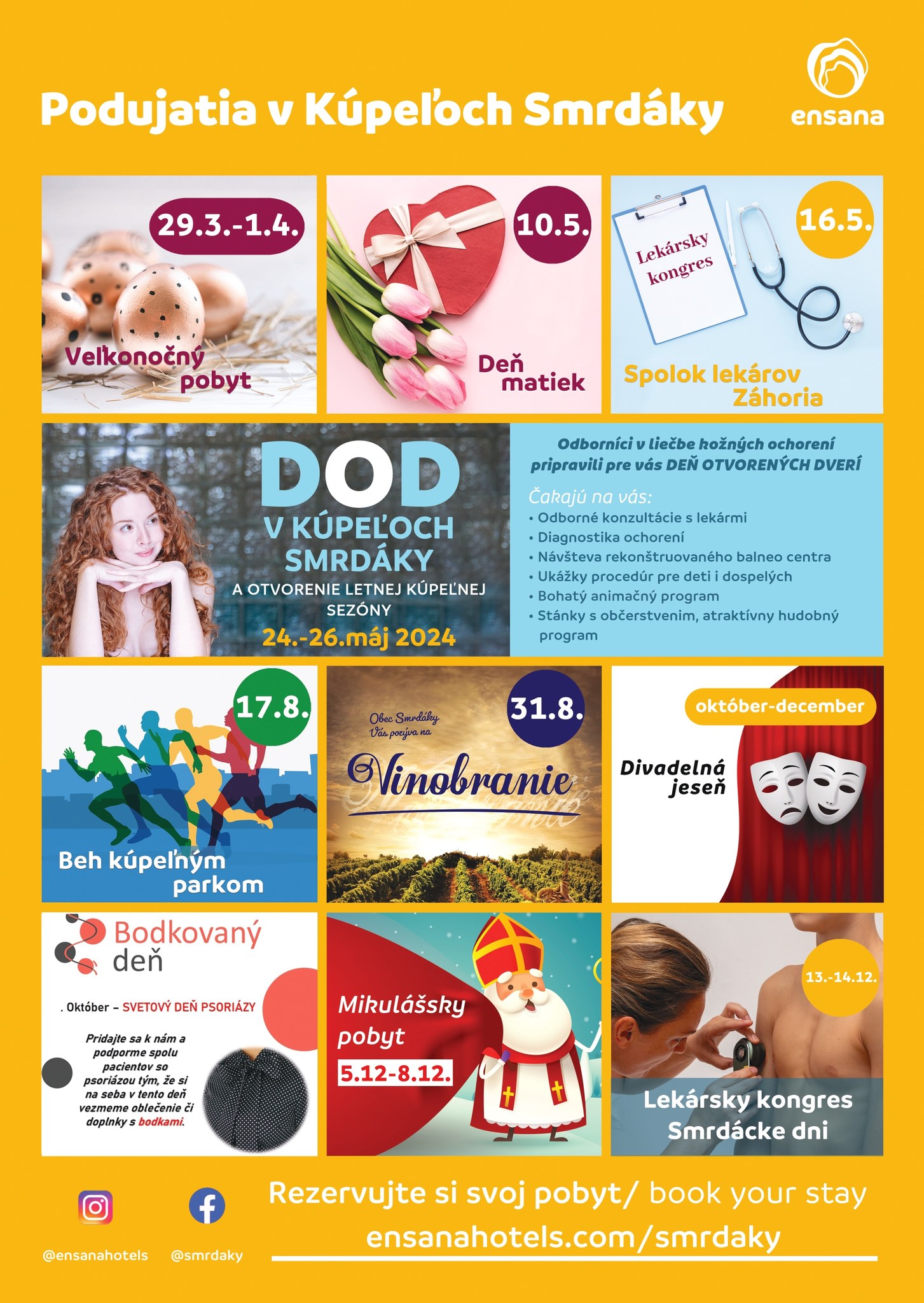 Kúpele Smrdáky vás v spolupráci s obcou Smrdáky pozývajú na nasledovné podujatia. Poznačte si ich do svojich kalendárov.