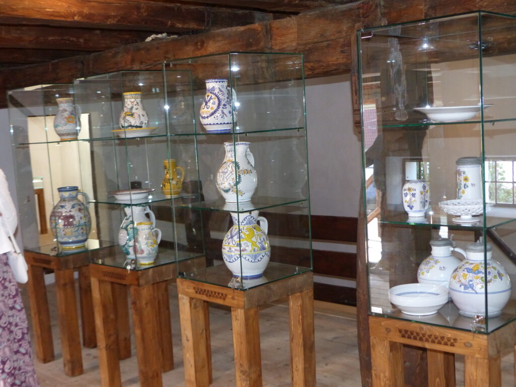 Obdivovať môžete dokonalé repliky známej habánskej keramiky – fajansy s typickými modrými ornamentmi, ktoré preslávili habánskych majstrov po celej Európe.